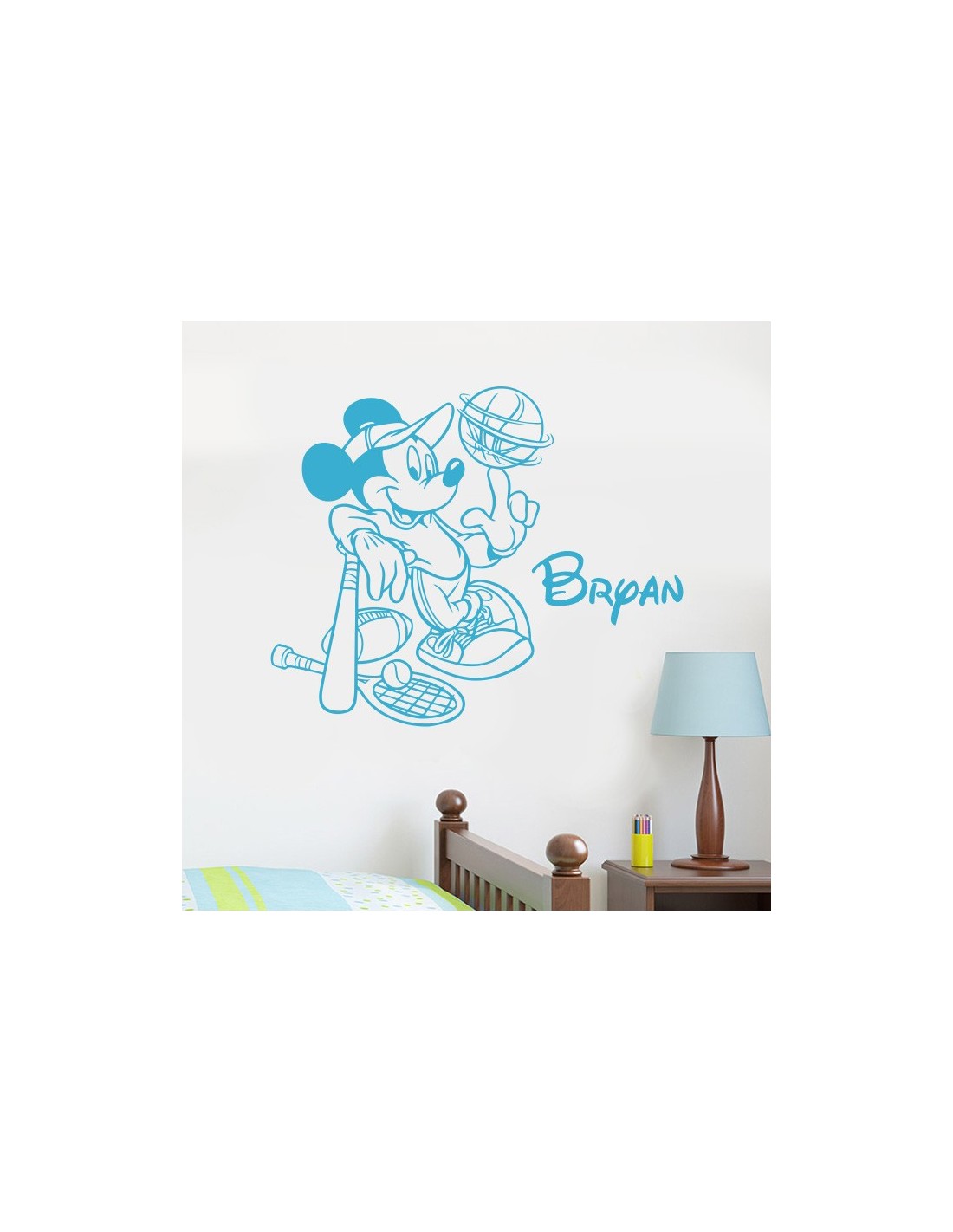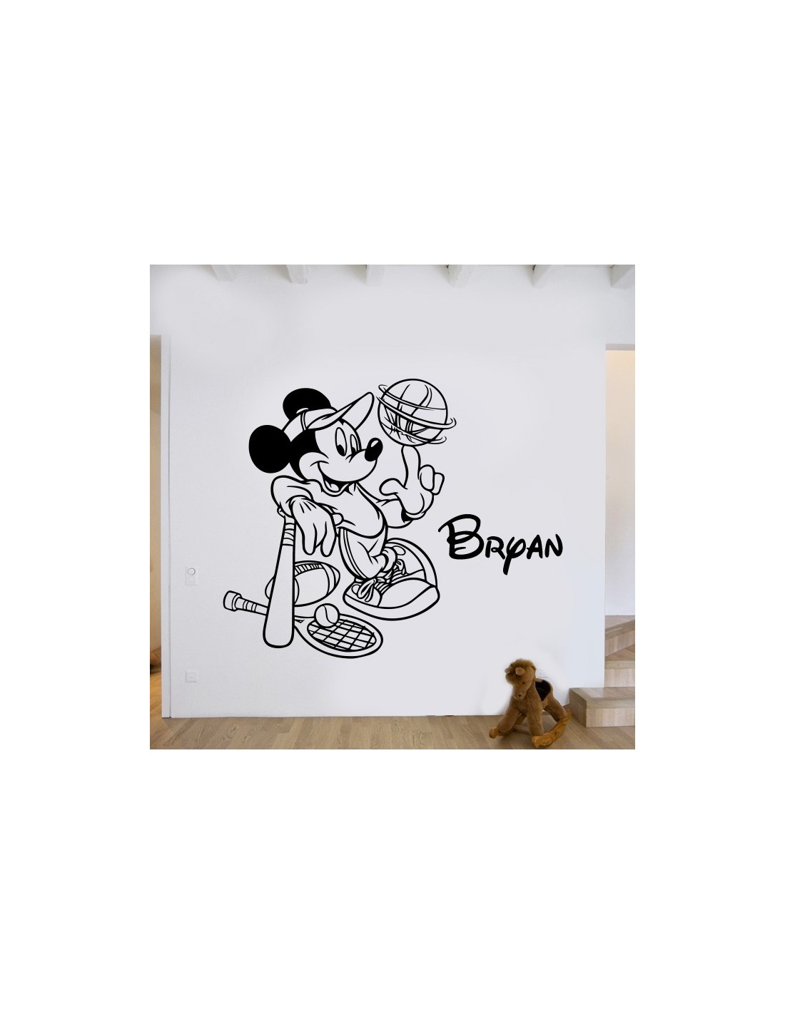 Sticker de décoration sur le thème du sport avec mickey en mode grand sportif. Créez une ambiance sportive dans la chambre de votre enfant avec ce sticker original accompagné du prénom de votre enfant dans le style d'écriture de Disney.
