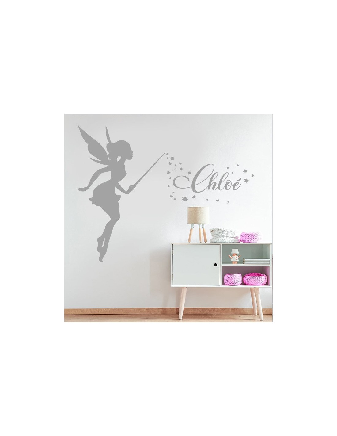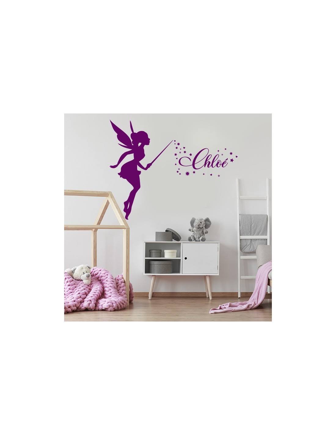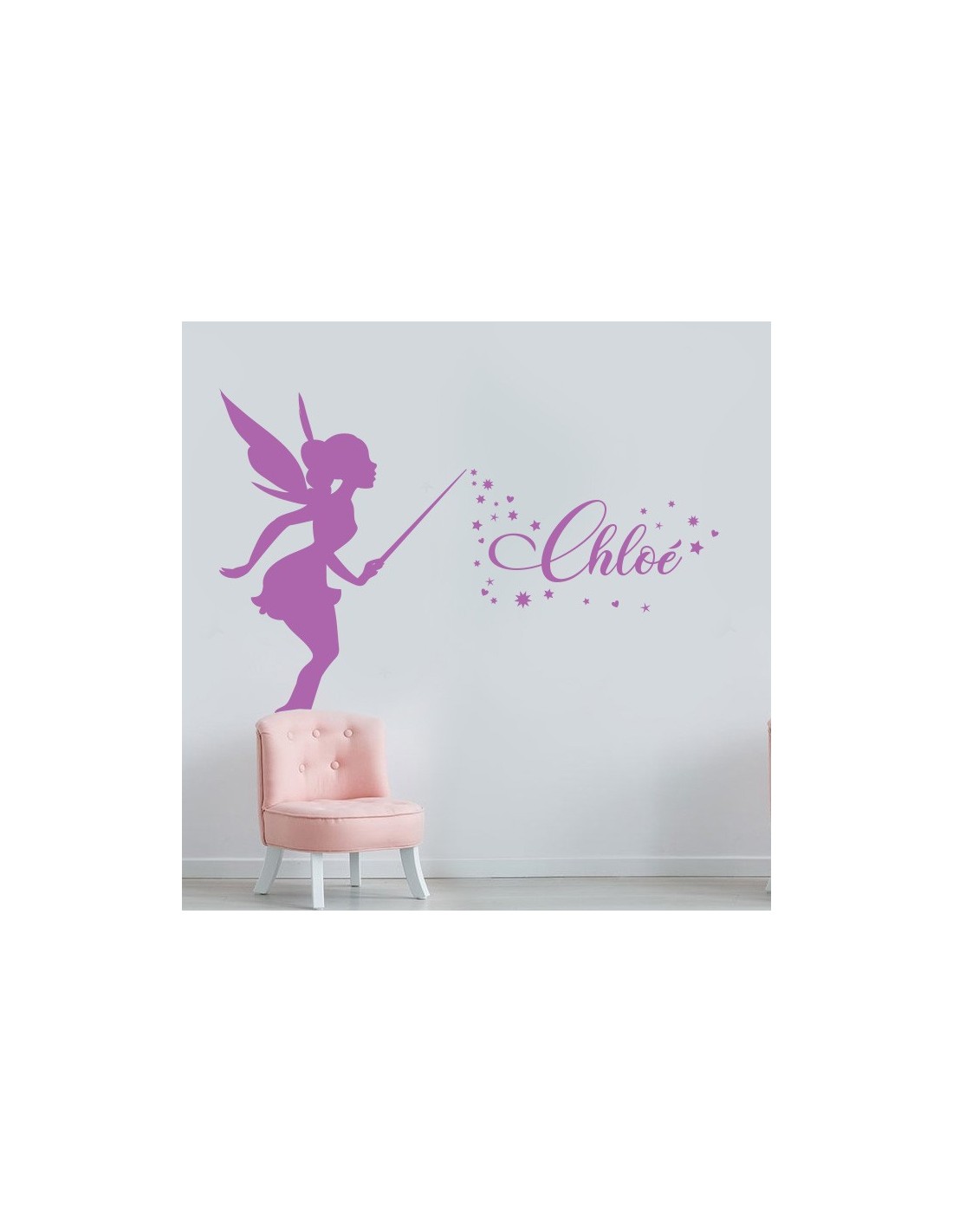 Donnez de la magie à la chambre de votre petite fille avec ce sticker fée clochette et sa baguette magique ornée de petites étoiles scintillante et du prénom de votre enfant pour décorer avec originalité sa chambre en créant un univers magique féérique avec ce sticker Fée magique.