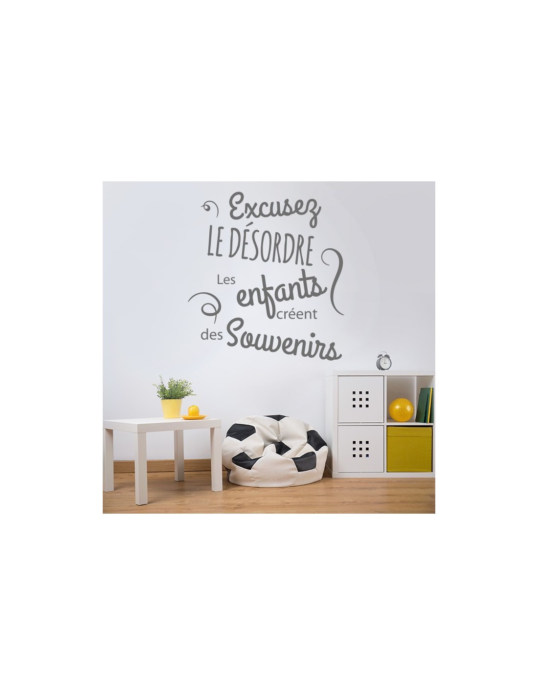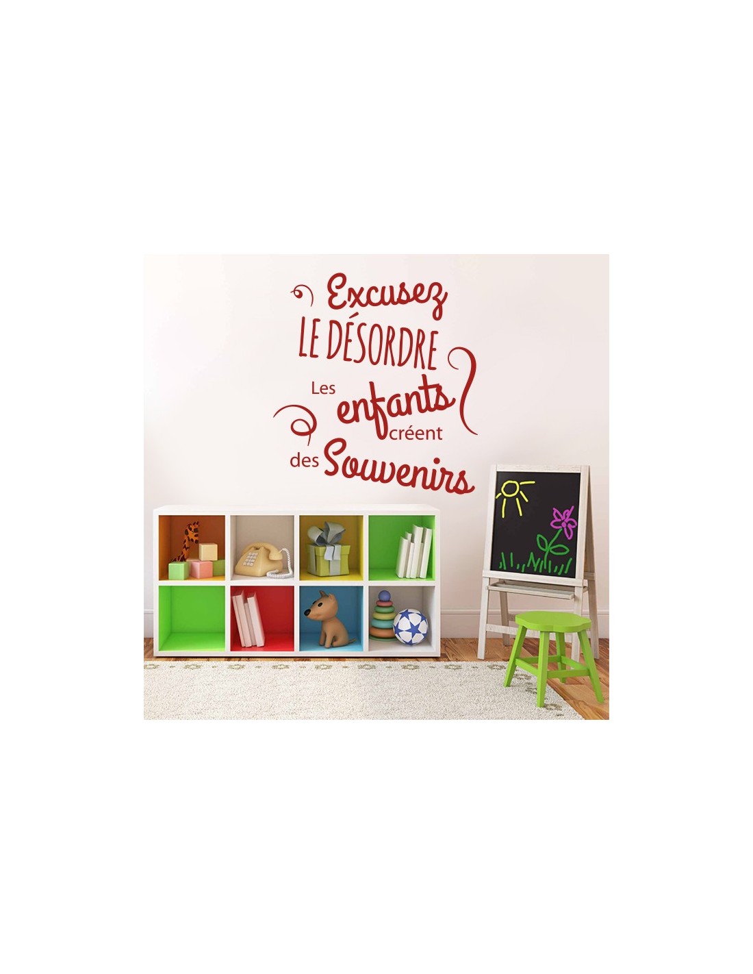 N'ayez plus peur de combiner désordre et visite surprise ! Avec ce sticker mural au texte annonceur de désordre, informez vos invités que les enfants créent des souvenirs.
