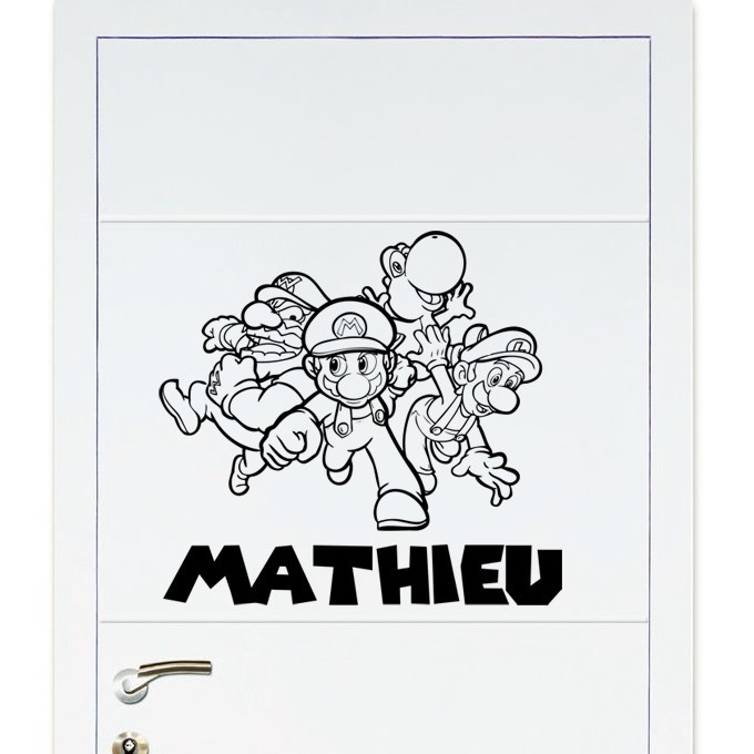 Sticker de décoration murale Mario Bros avec prénom personnalisé