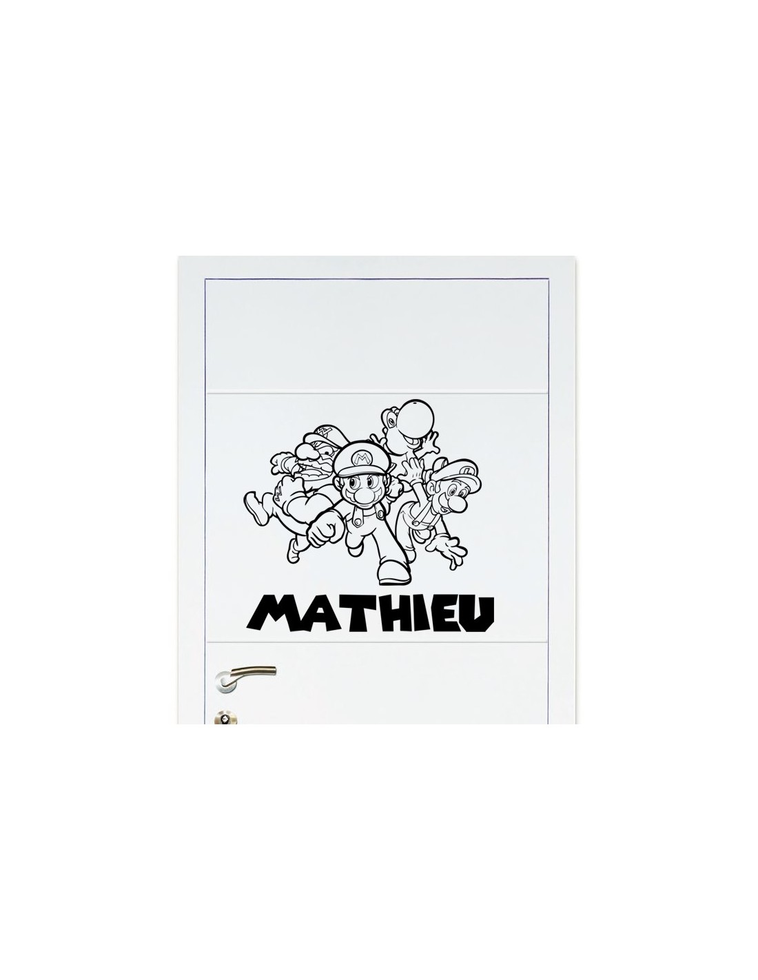 Sticker de décoration murale Mario Bros avec prénom personnalisé