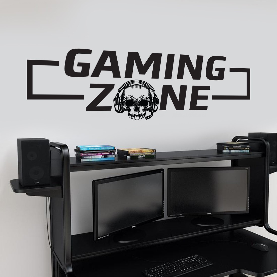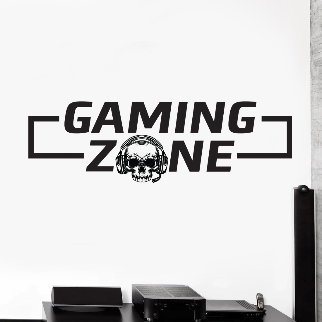 Définissez votre zone de jeu grâce à ce sticker mural gaming zone et sa tête de mort.