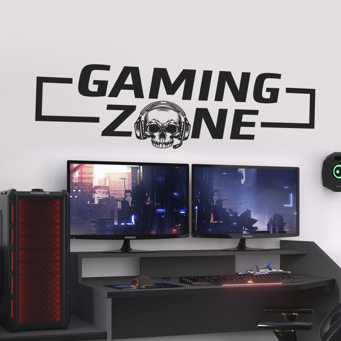 Définissez votre zone de jeu grâce à ce sticker mural gaming zone et sa tête de mort.