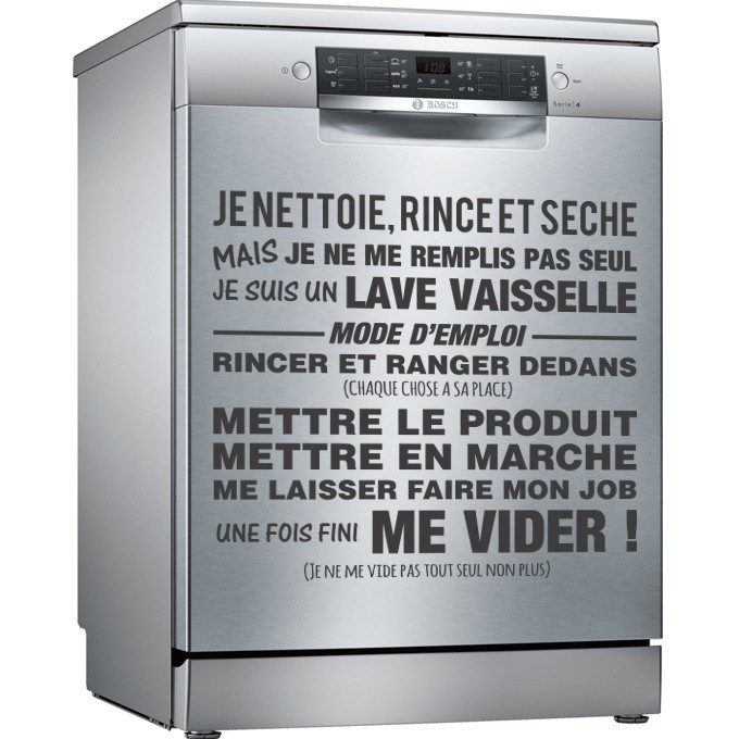 Il est fort utile au quotidien et pourtant beaucoup sont souvent pas ami avec lui... Le lave vaisselle ! Apportez lui une touche personnalisée avec ce sticker mode d'emploi, ou règlement selon le point de vue, pour que chaque membre de votre famille se familiarise avec lui. En plus de son côté ludique et drôle, ce sticker lave vaisselle apportera une touche d'originalité dans votre cuisine.