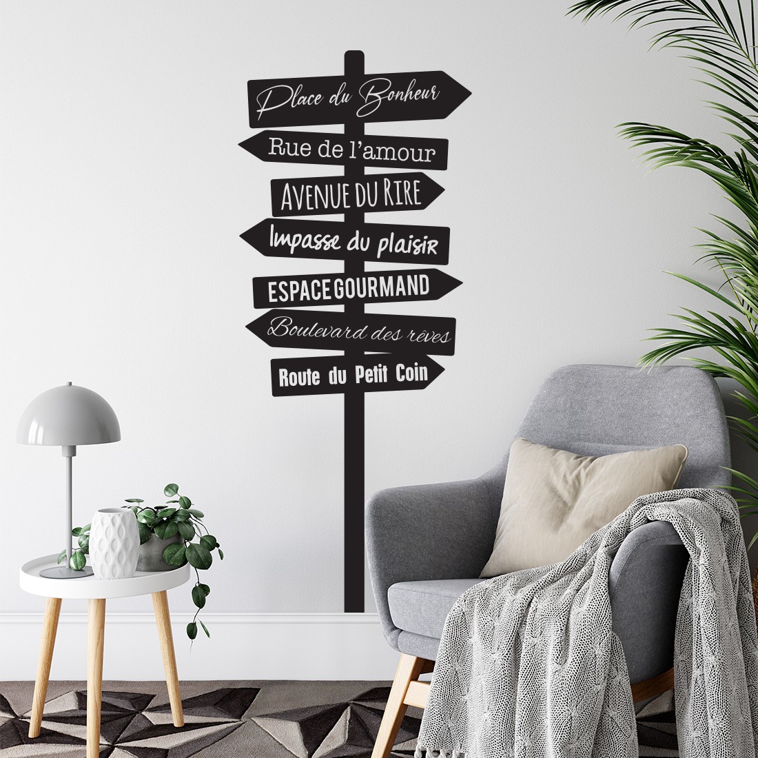 Ce sticker mural panneaux de directions saura apporter à votre intérieur de l'originalité tout en le décorant.