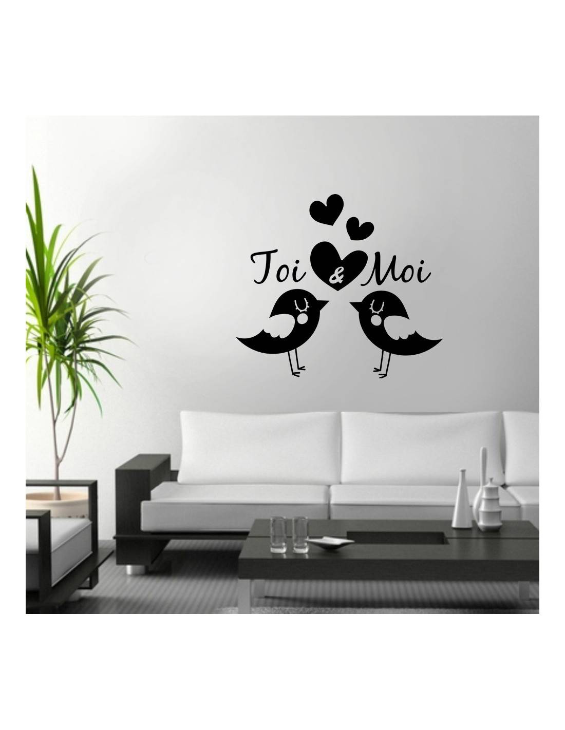 Ambiance romantique avec ce sticker Toi & Moi et son couple d'oiseaux.