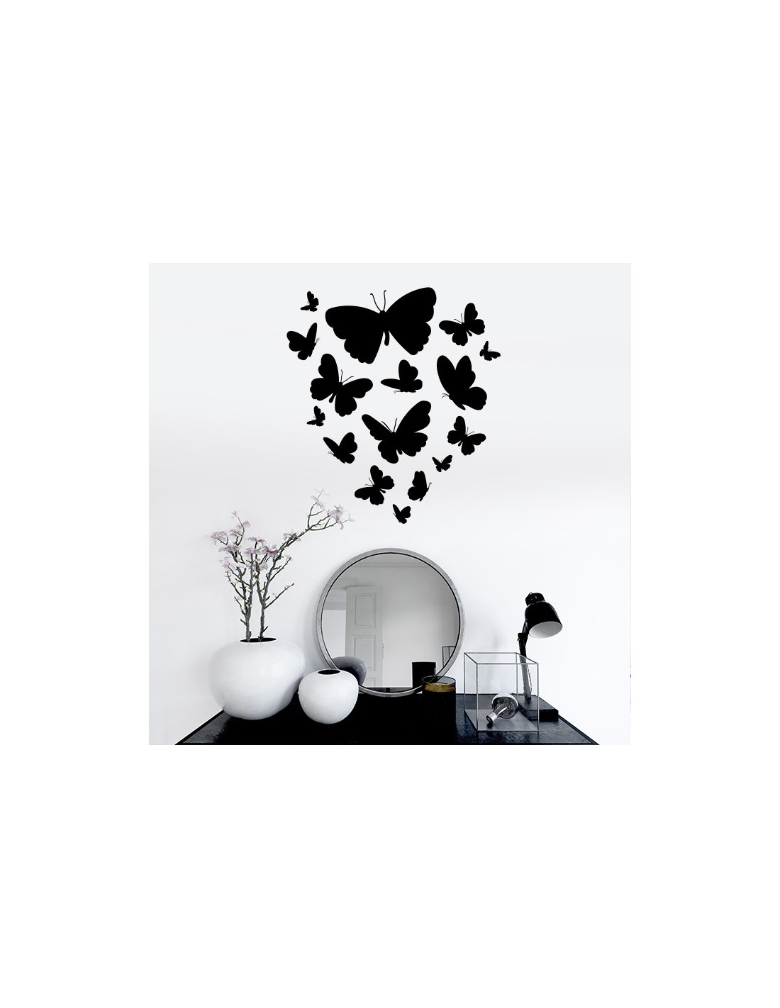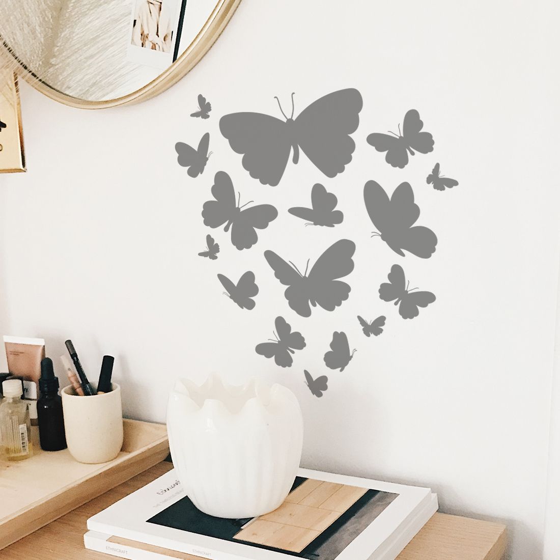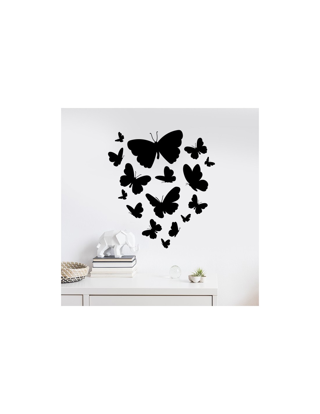 Apportez une petite touche de délicatesse et de légèreté à votre décoration d'intérieur avec ce sticker mural envolée de papillons.
