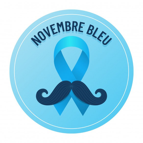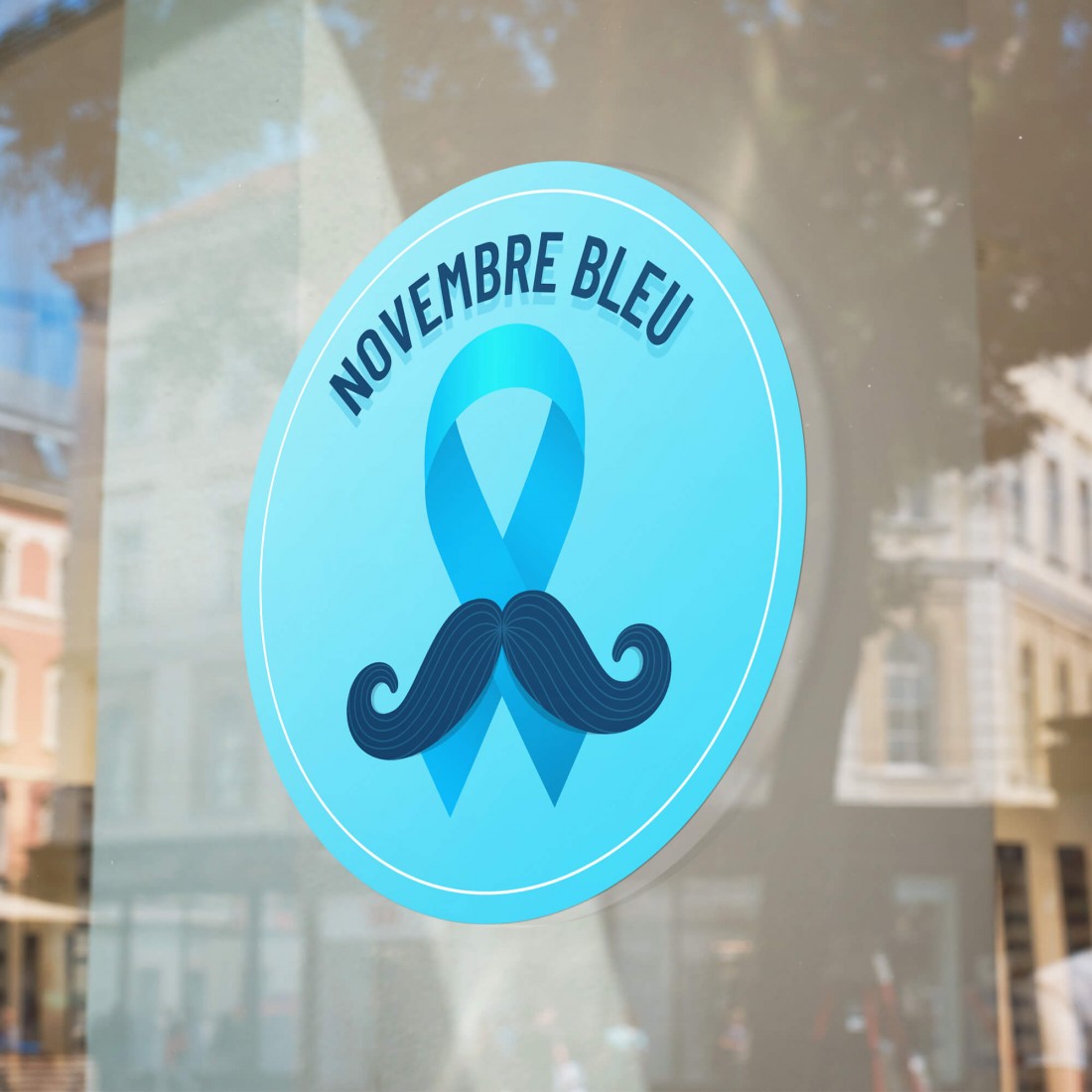 Sticker vitrine Novembre Bleu / Movember livré avec raclette d'application et notice de pose.