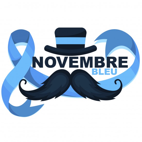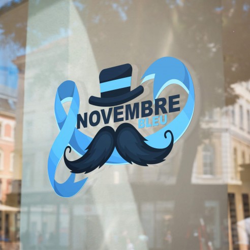 Sticker vitrine Novembre Bleu / Movember livré avec raclette d'application et notice de pose.