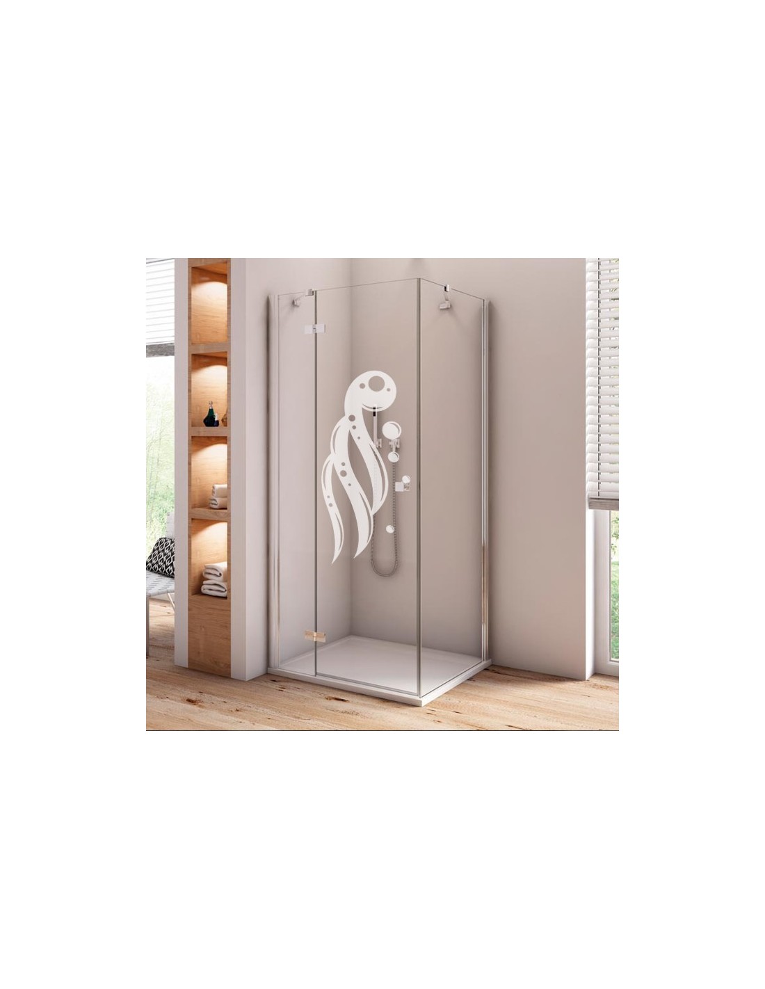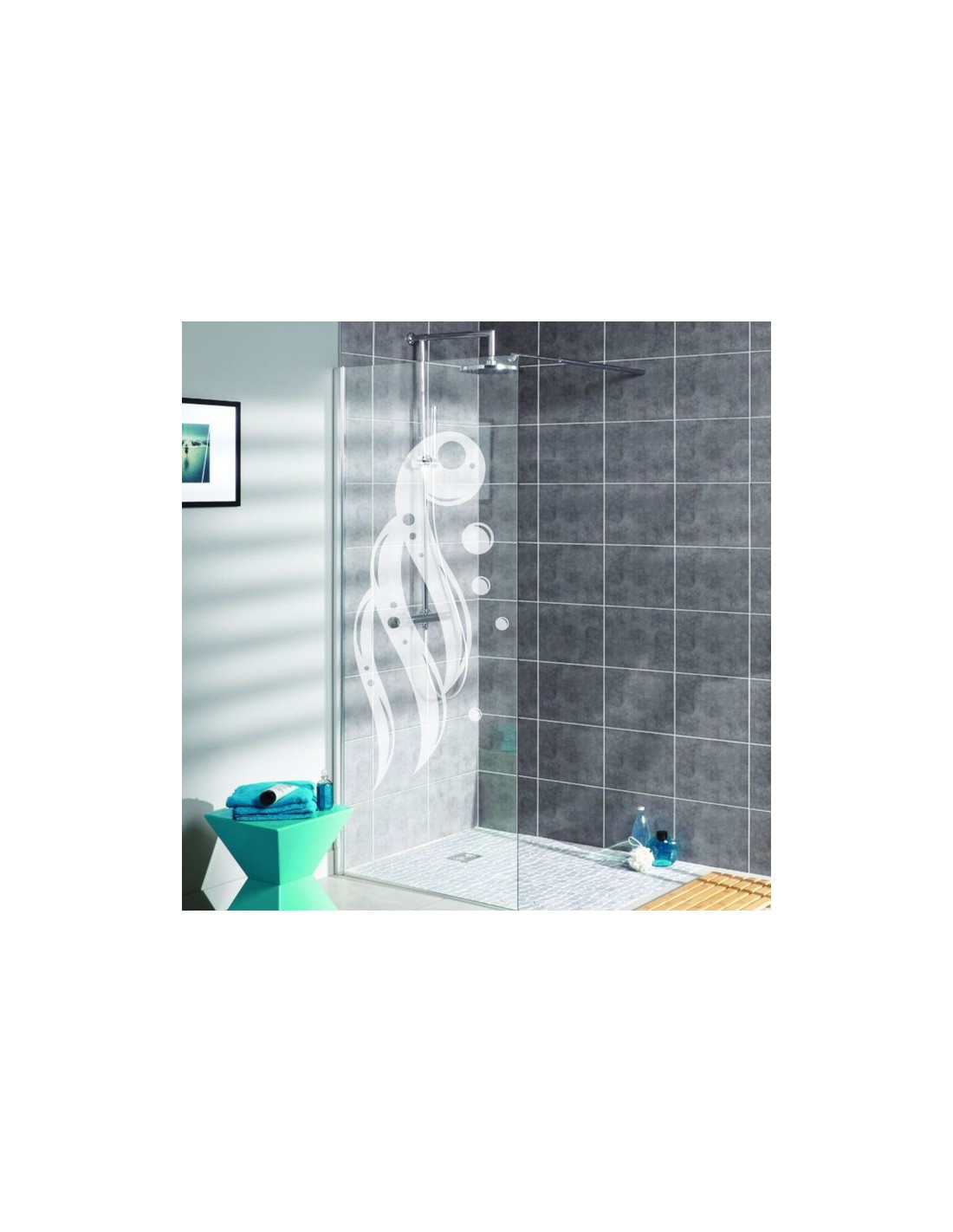 Sticker dépoli de décoration pour paroi de douche. Décorer et préserver l'intimité grâce à l'adhésif dépoli opaque laissant passer la lumière mais occultant la vue.