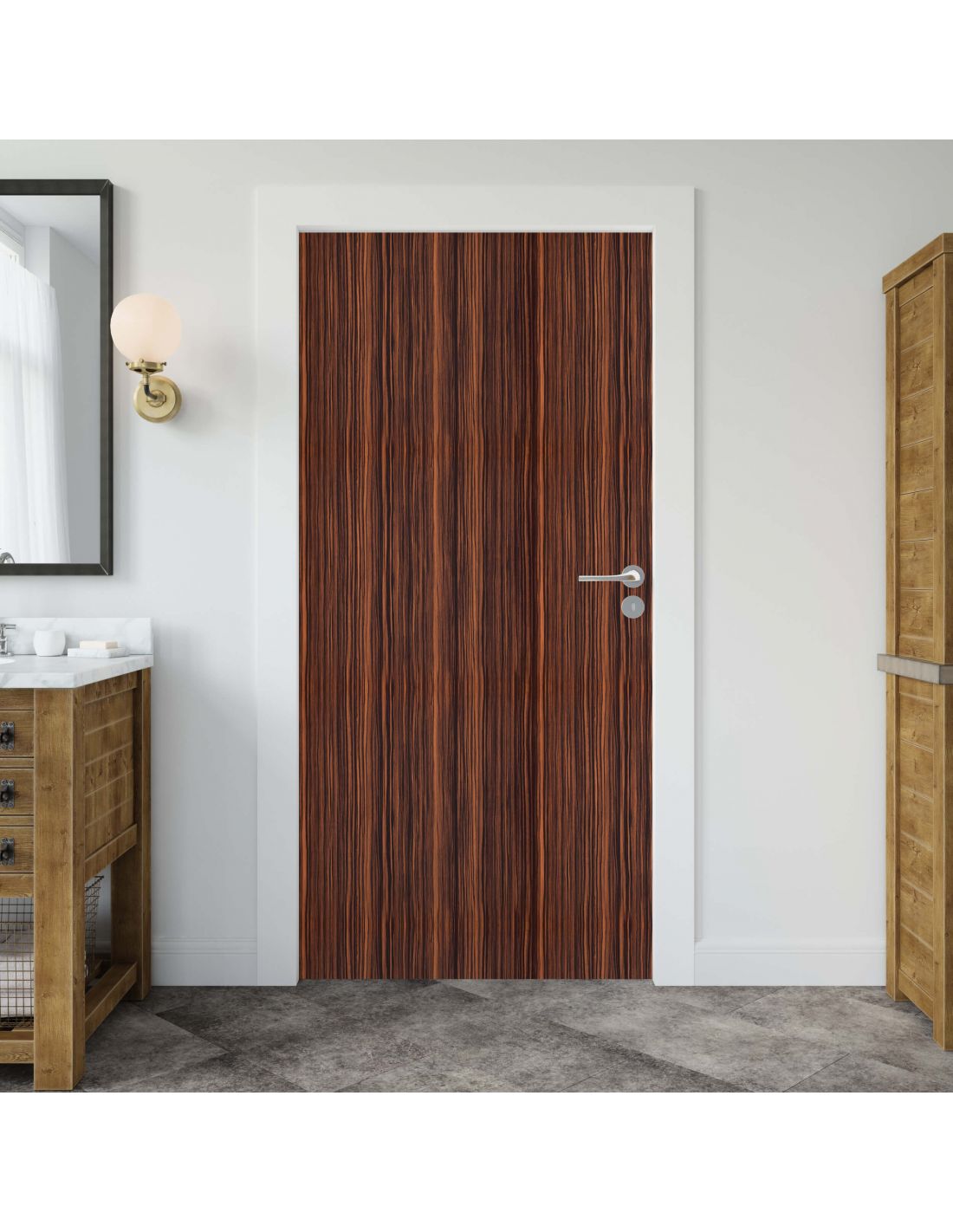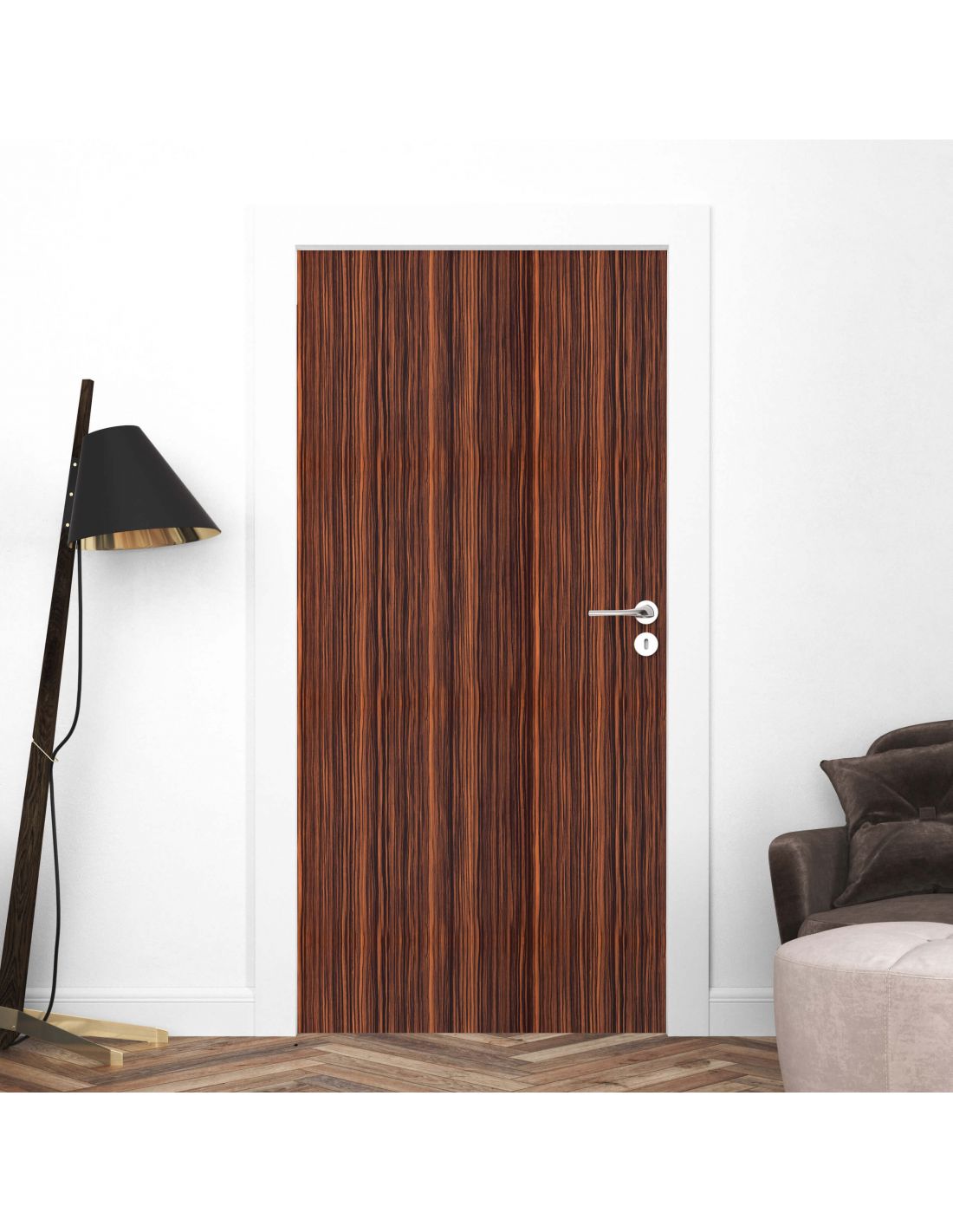 Sticker porte effet bois acajou