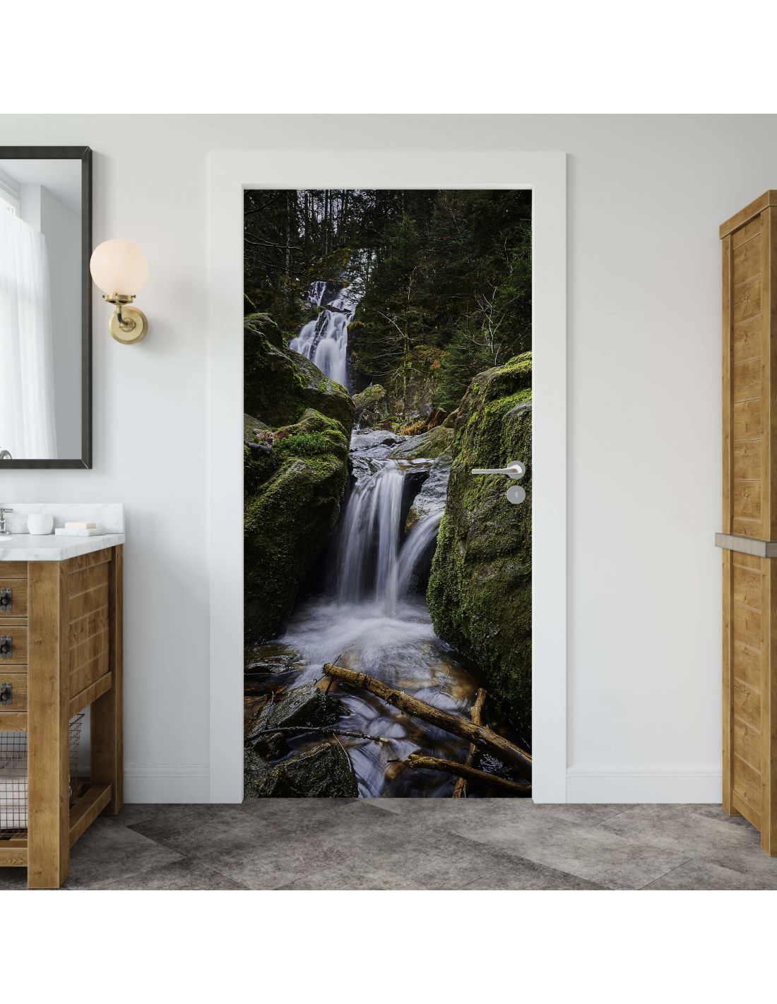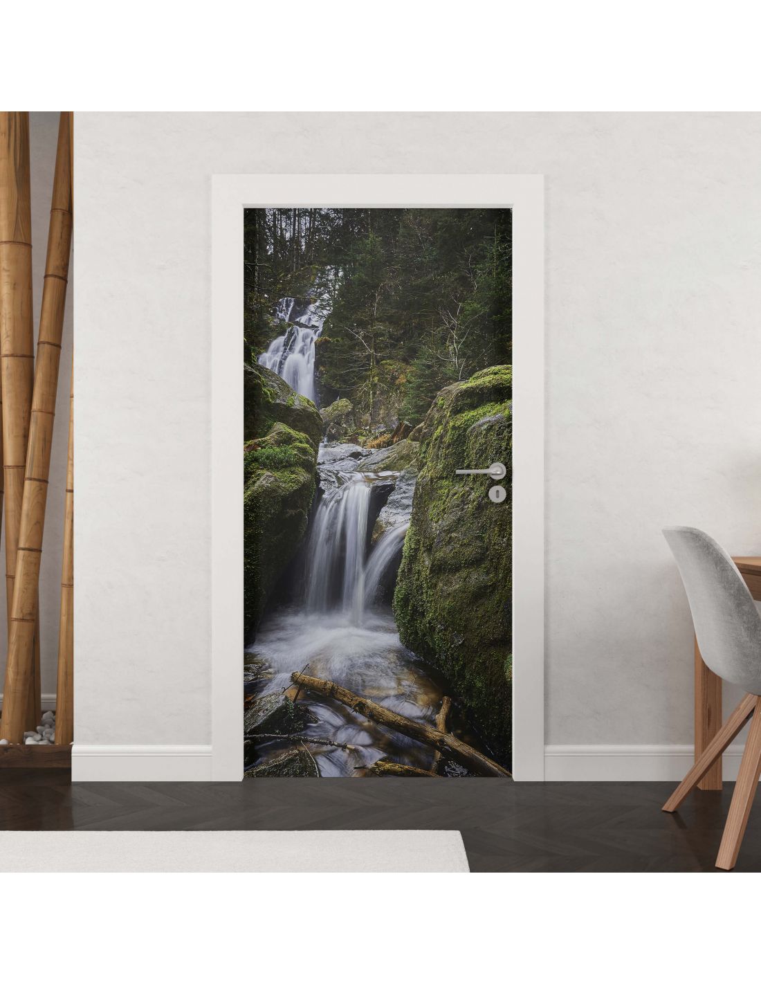 Sticker porte décor nature cascade d'eau