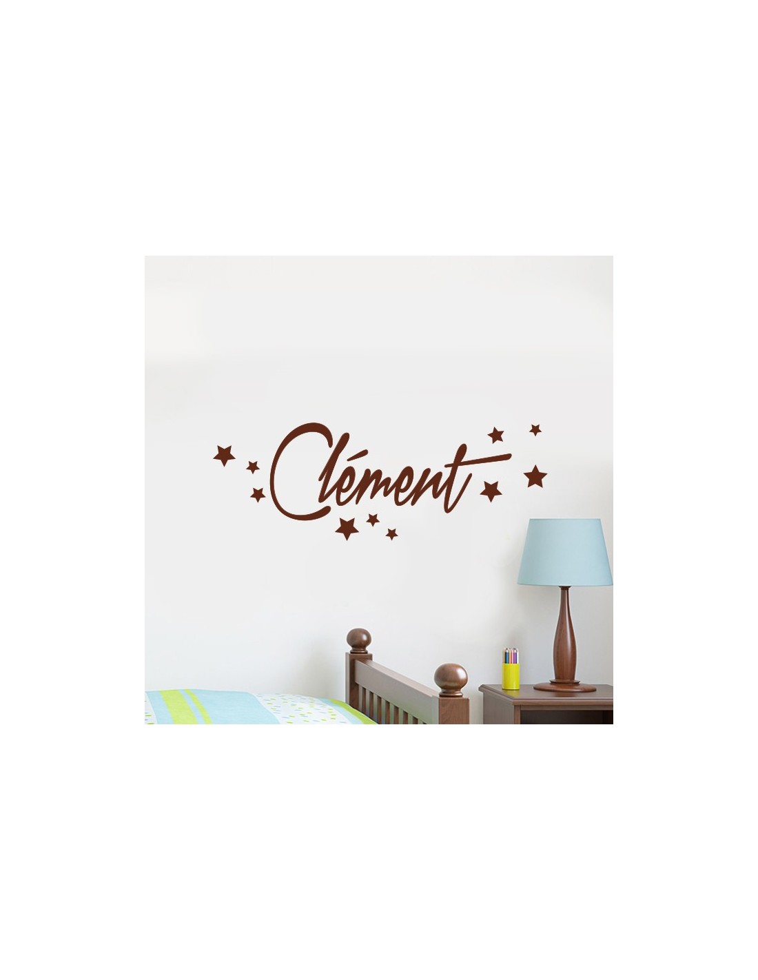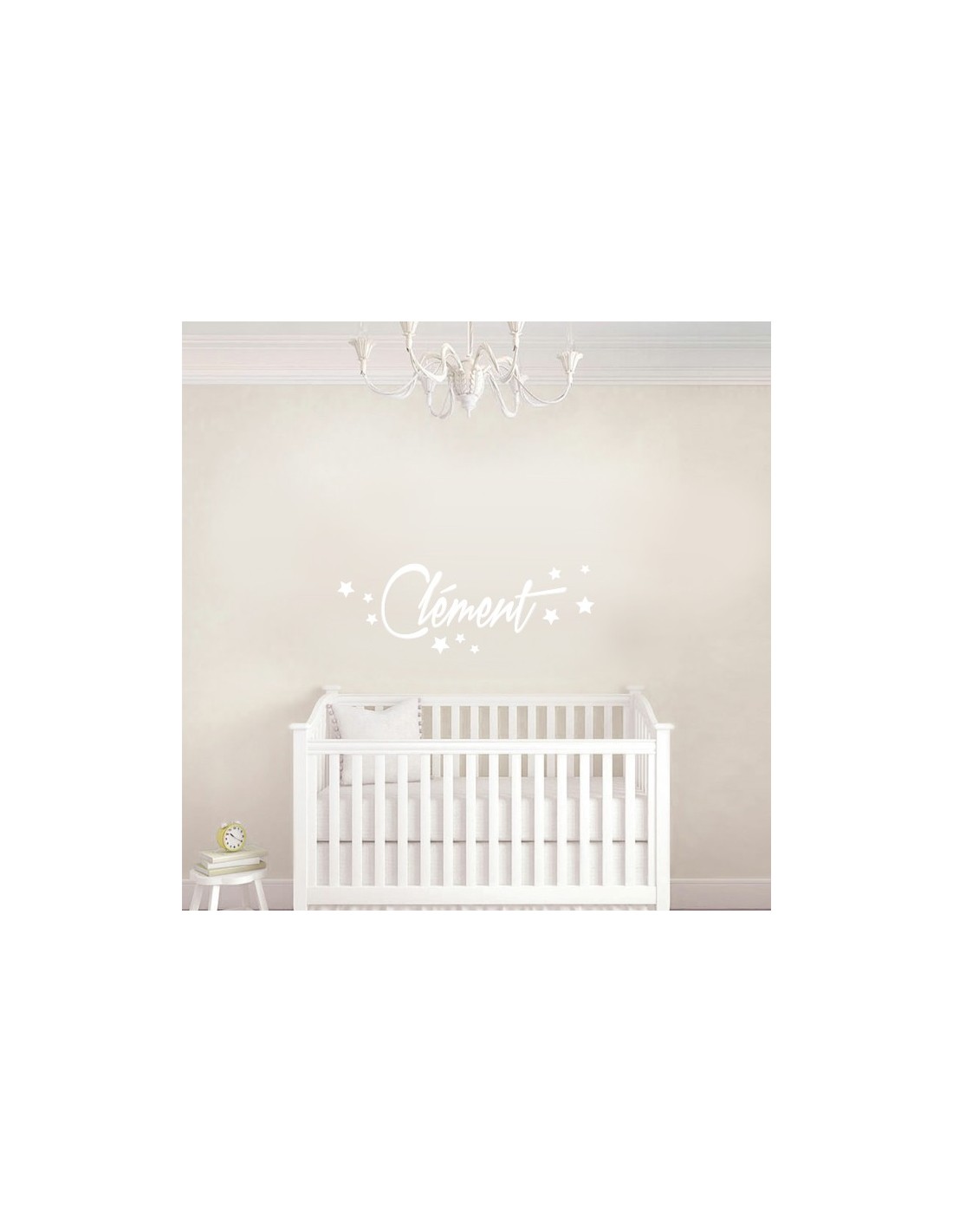 Sticker prénom personnalisé avec décoration étoiles . Modèle mixte pouvant aussi bien être fabriqué pour un garçon que pour une fille en personnalisant sa couleur.