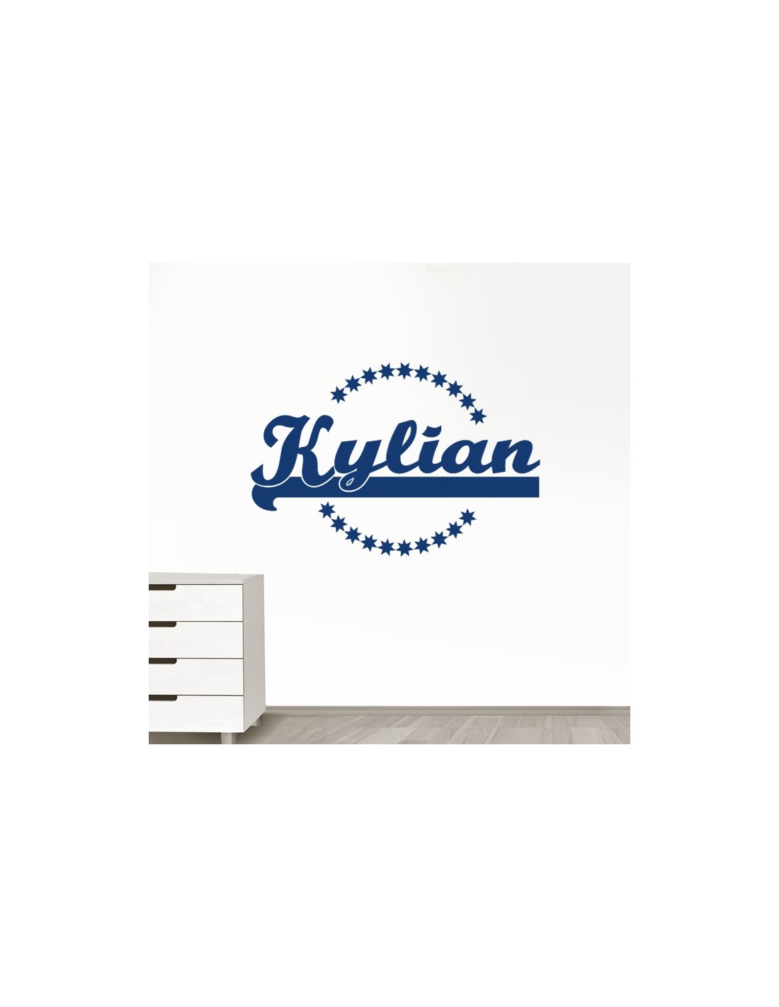 Sticker prénom personnalisé thème US / Baseball avec contour étoiles.