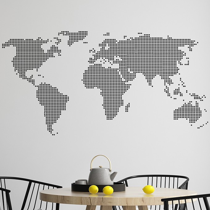 Créer une belle décoration murale dans son intérieur est chose facile avec ce sticker carte du monde au design original représenté par des petits ronds. En choisissant la couleur d'adhésif qui collera parfaitement à votre décoration d'intérieur, ce sticker de la carte du monde fera son effet et sublimera votre maison.