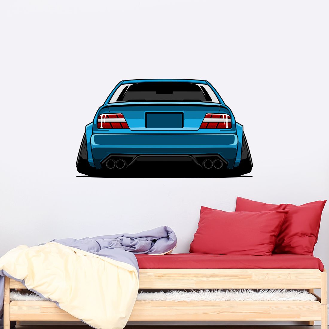 Décorez votre pièce avec caractère grâce à ce sticker mural voiture et son impressionnante vue de derrière de cette belle sportive.