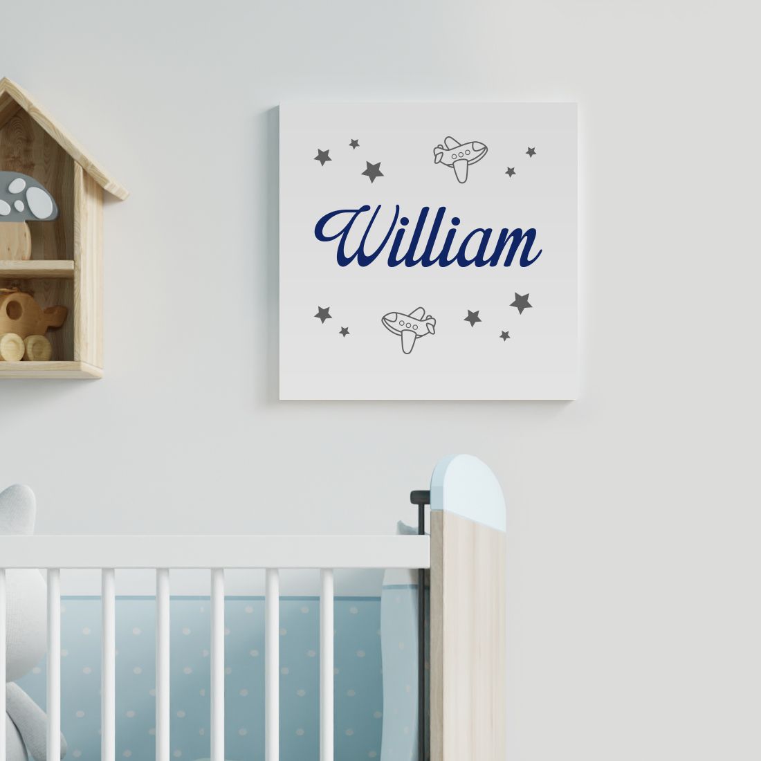 Apportez un joli élément de décoration à la chambre de votre enfant avec ce tableau 30x30cm personnalisable en toile blanche montée sur un châssis en bois. Choisissez vos couleurs et personnalisez le prénom pour obtenir votre tableau déco personnalisé !