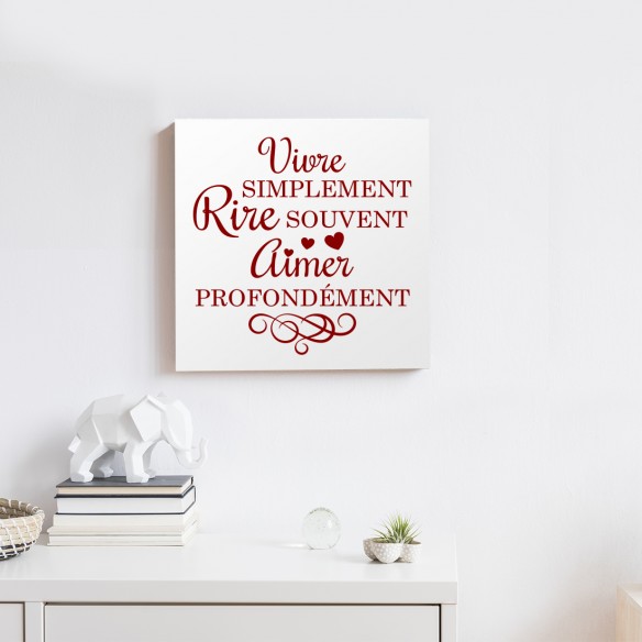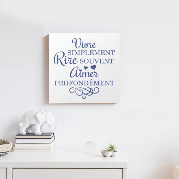 Un joli tableau citation "Vivre simplement" pour agrémenter votre décoration d'intérieur. Avec sa toile blanche montée sur un châssis en bois 30x30cm, il saura prendre sa place dans votre intérieur pour lui donner du cachet.