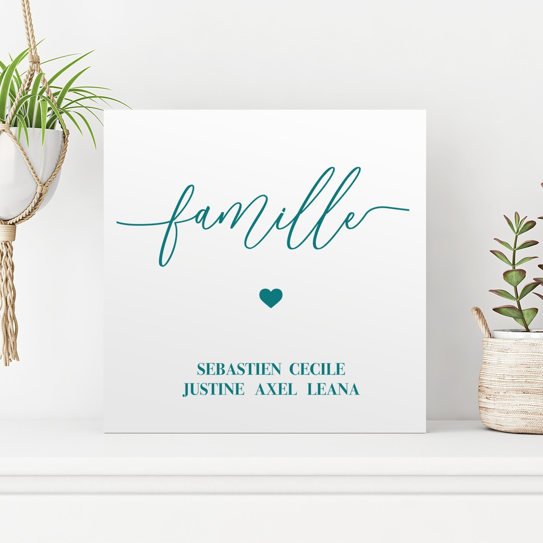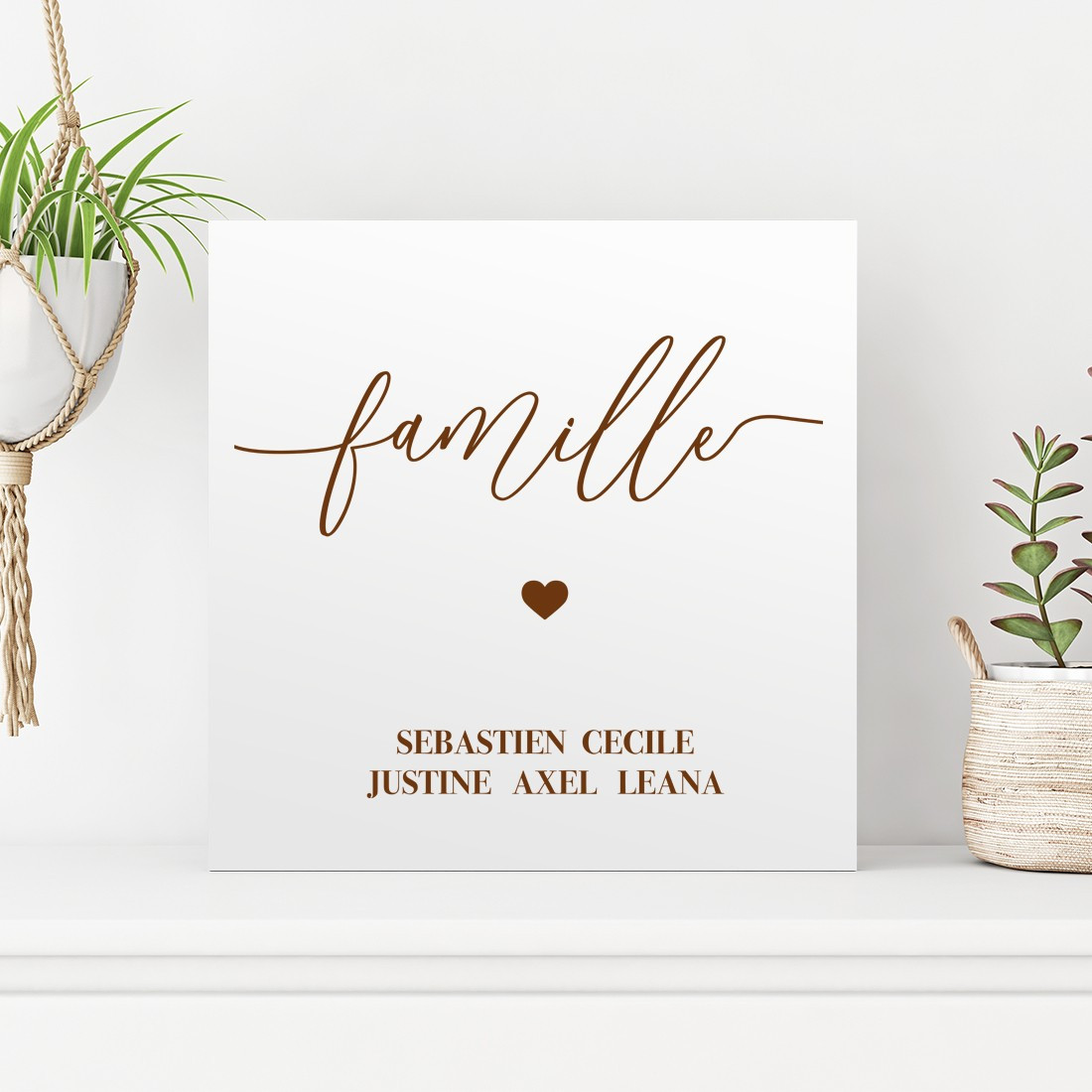 Décorez votre intérieur avec subtilité grâce à ce tableau personnalisé. Une belle attention et un joli clin d'oeil à chaque membre de votre famille. Ce tableau au format 30x30cm est personnalisable avec les prénoms de votre choix. De quoi s'offrir ou offrir un objet déco de qualité et 100% personnalisé. La disposition et la taille des prénoms sont automatiquement ajustés en fonction de leur nombre.