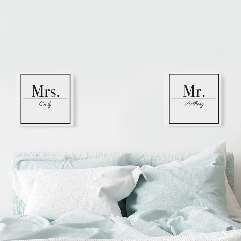 Idéal pour décorer votre chambre à coucher, ce lot de 2 tableaux toiles blanches 30 x 30 cm à personnaliser avec votre prénom et celui de votre moitié donnera du cachet à votre décoration et saura apporter une touche d'amour à votre intérieur.