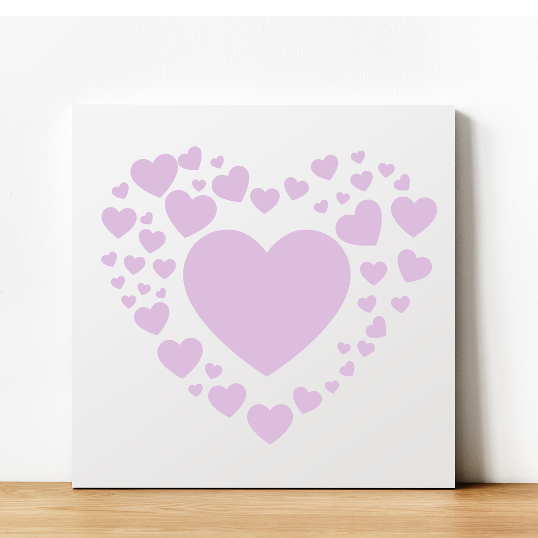 Tableau décoratif cœurs pour apporter une petite touche d'amour dans votre intérieur. Ce tableau toile blanche au format 30x30cm s'accordera parfaitement avec votre déco d'intérieur en personnalisant la couleur des cœurs.