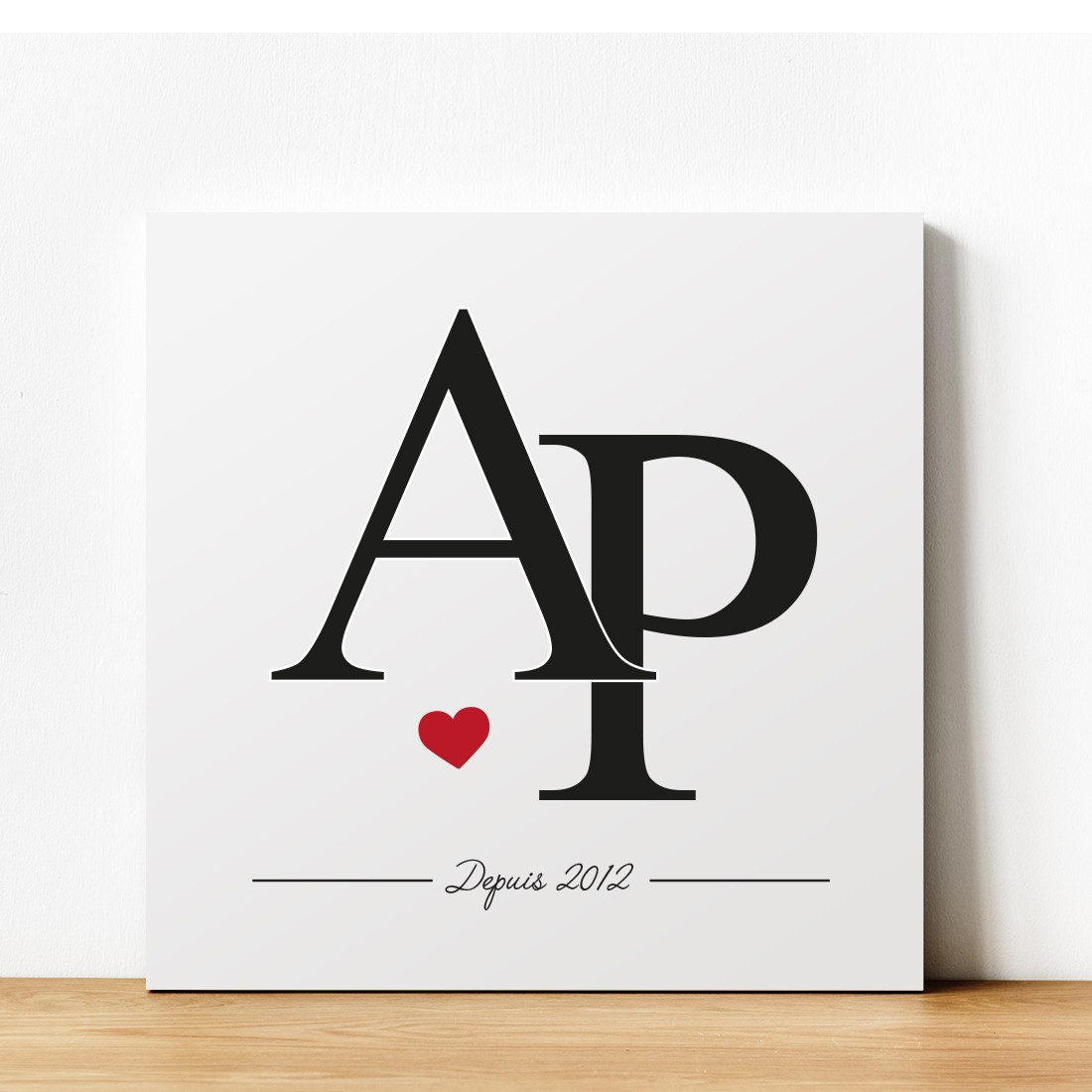 Tableau déco 30x30cm à personnaliser avec vos initiales et l'année de votre rencontre. Un tableau personnalisé original pour décorer votre intérieur ou pour offrir en cadeau.