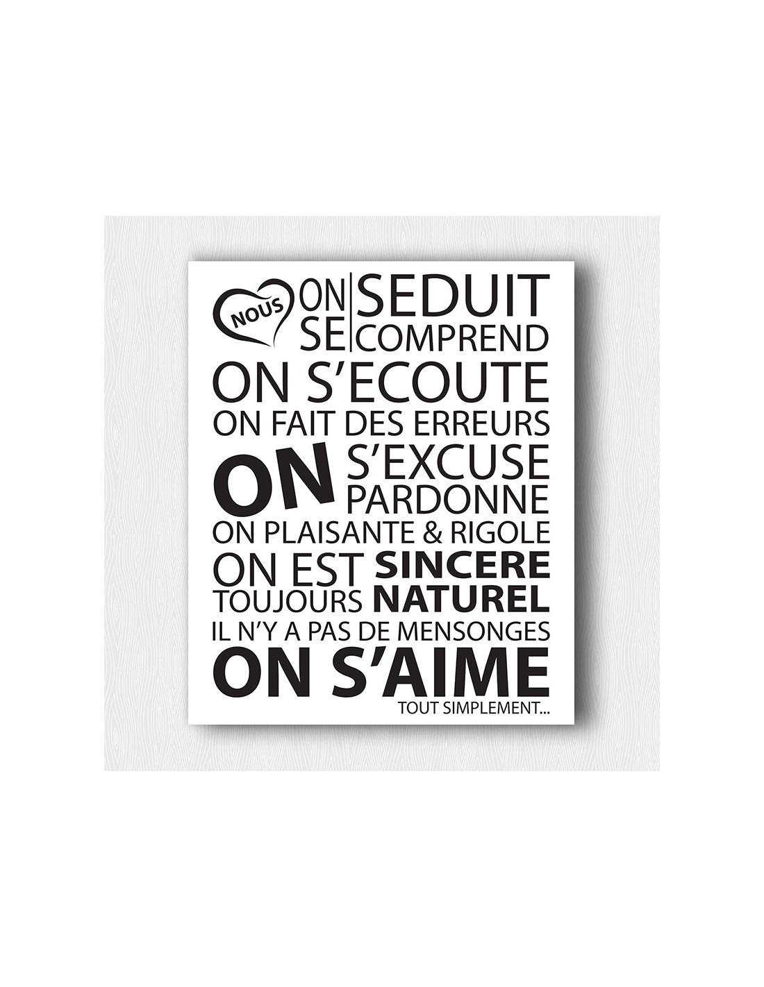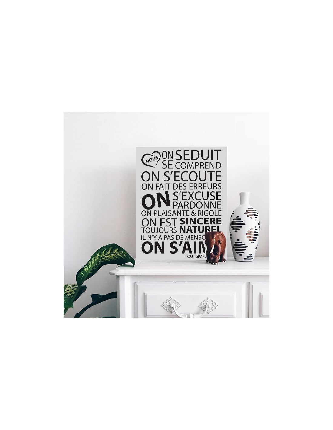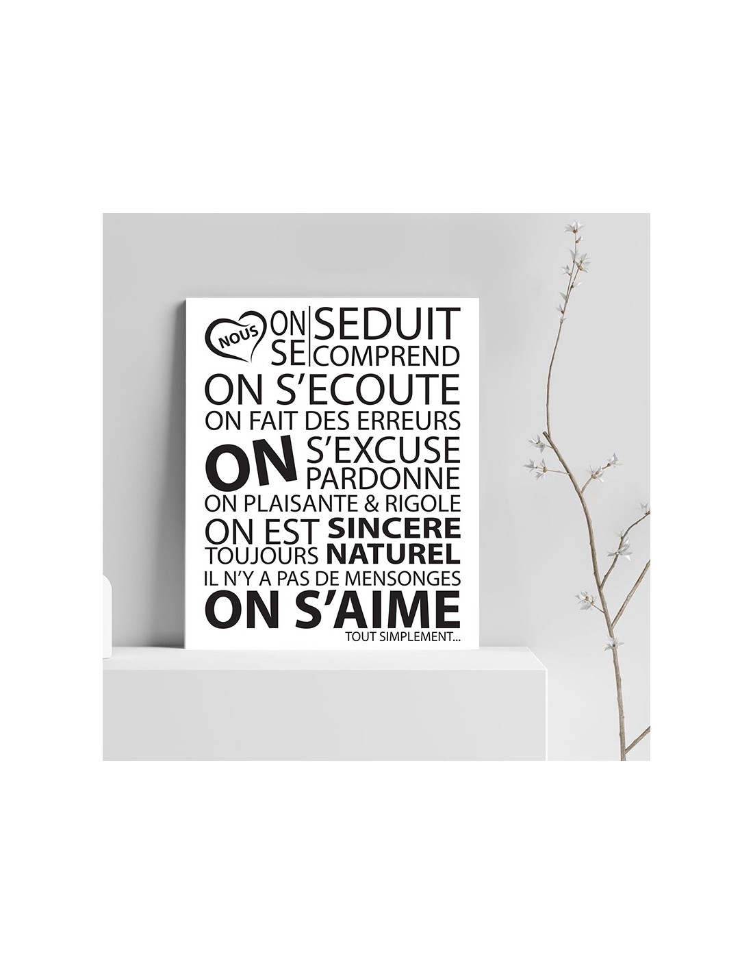 Le tableau citation toile blanche imprimée "on se séduit" et montée sur un châssis en bois. Ce tableau 30x40cm donnera sans aucun doute du cachet à votre intérieur.