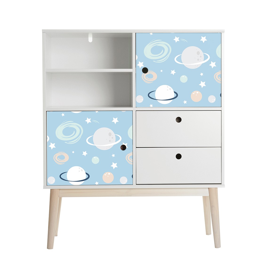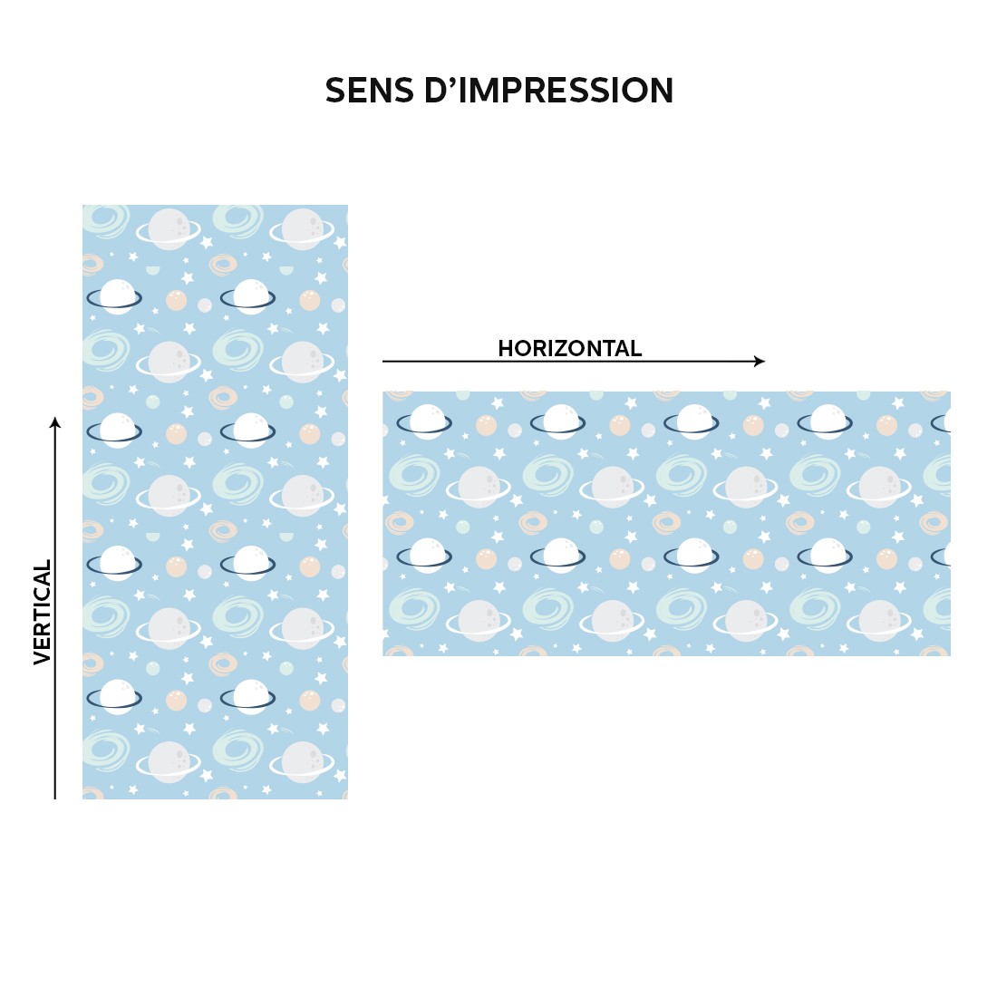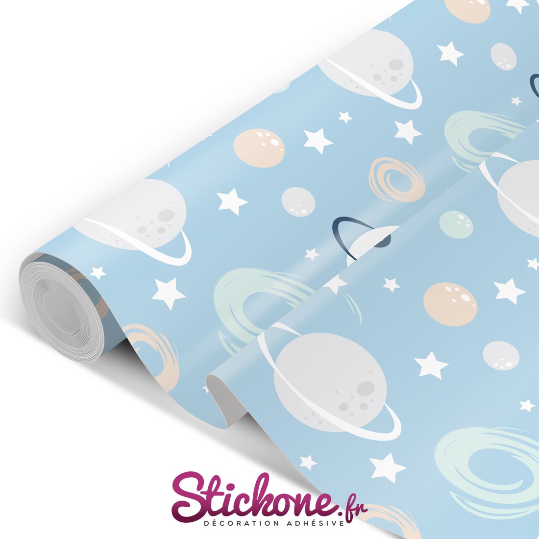 Rouleau de vinyle adhésif créatif thème espace avec planètes pour personnalisation de meuble, plateau de bureau, placards, escaliers ou pour vos projets de rénovation, DIY, etc... Film adhésif vendu au mètre linéaire de 1 à 3 mètre. De plus, ce film vinyle peut être découpé au plotter de découpe, silhouette cameo, cricut ou scan n cut.