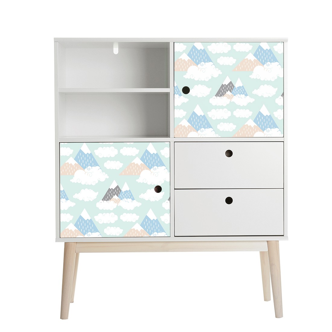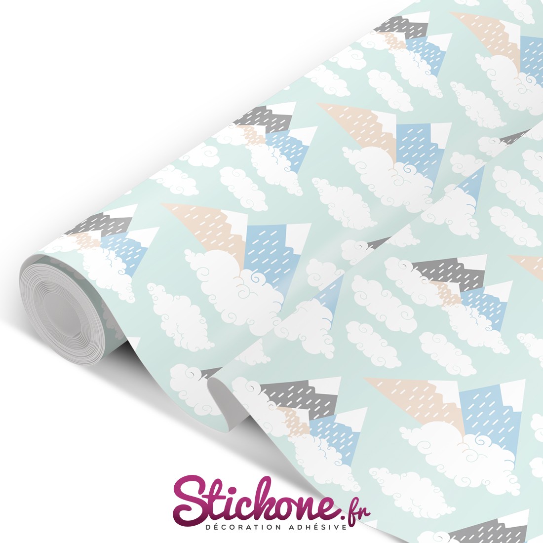 Rouleau de vinyle adhésif créatif enfant nuages et montagnes pour personnalisation de meuble, plateau de bureau, placards, escaliers ou pour vos projets de rénovation, DIY, etc... Film adhésif vendu au mètre linéaire de 1 à 3 mètre. De plus, ce film vinyle peut être découpé au plotter de découpe, silhouette cameo, cricut ou scan n cut.