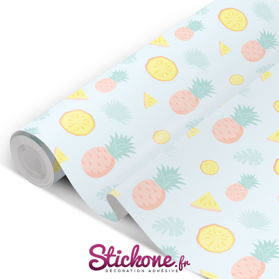 Rouleau de vinyle adhésif créatif ananas pour personnalisation de meuble, plateau de bureau, placards, escaliers ou pour vos projets de rénovation, DIY, etc... Film adhésif vendu au mètre linéaire de 1 à 3 mètre. De plus, ce film vinyle peut être découpé au plotter de découpe, silhouette cameo, cricut ou scan n cut.