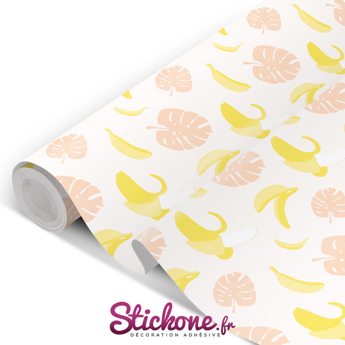 Rouleau de vinyle adhésif créatif motifs bananes pour personnalisation de meuble, plateau de bureau, placards, escaliers ou pour vos projets de rénovation, DIY, etc... Film adhésif vendu au mètre linéaire de 1 à 3 mètre. De plus, ce film vinyle peut être découpé au plotter de découpe, silhouette cameo, cricut ou scan n cut.