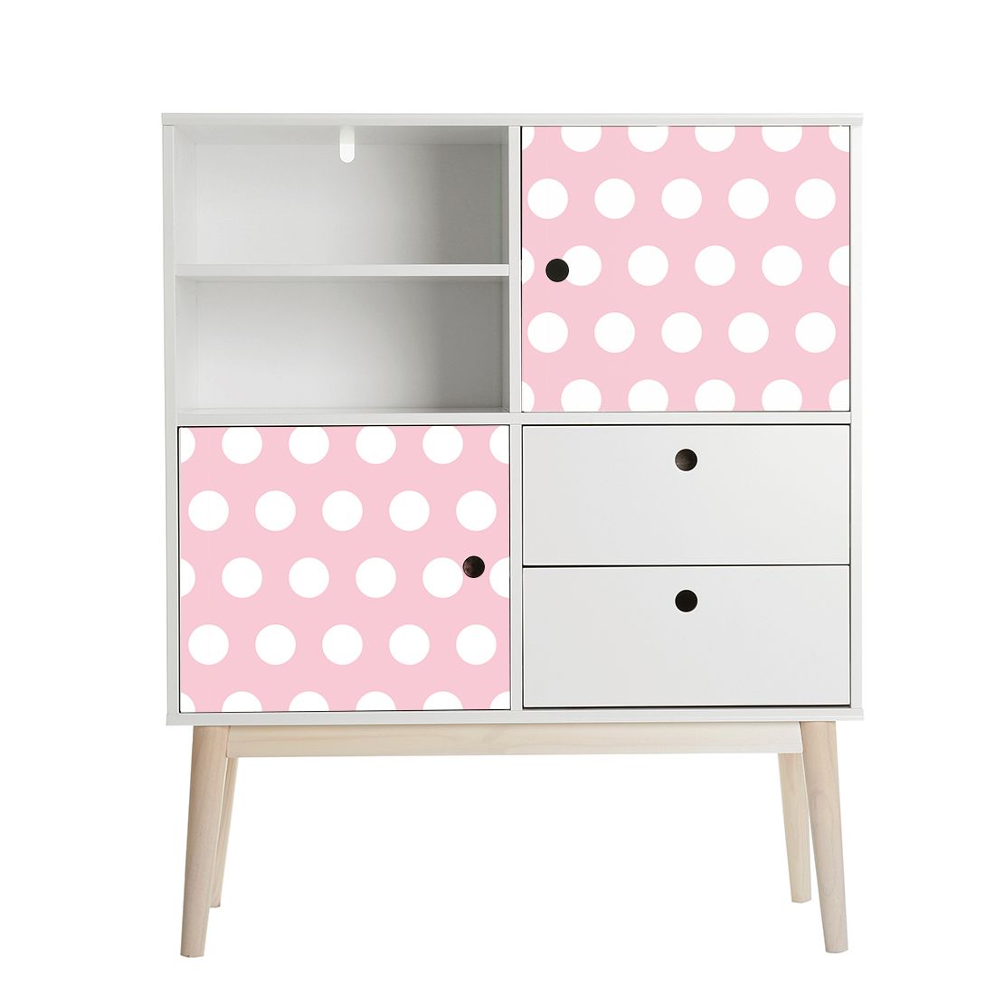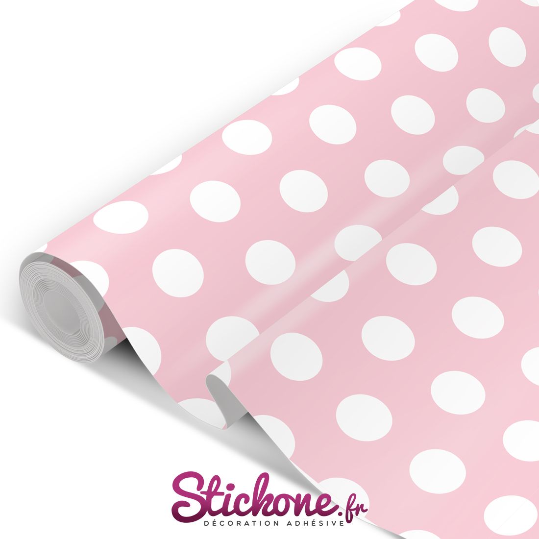 Rouleau de vinyle adhésif créatif motifs pois blanc sur fond rose pour personnalisation de meuble, plateau de bureau, placards, escaliers ou pour vos projets de rénovation, DIY, etc... Film adhésif vendu au mètre linéaire de 1 à 3 mètre. De plus, ce film vinyle peut être découpé au plotter de découpe, silhouette cameo, cricut ou scan n cut.