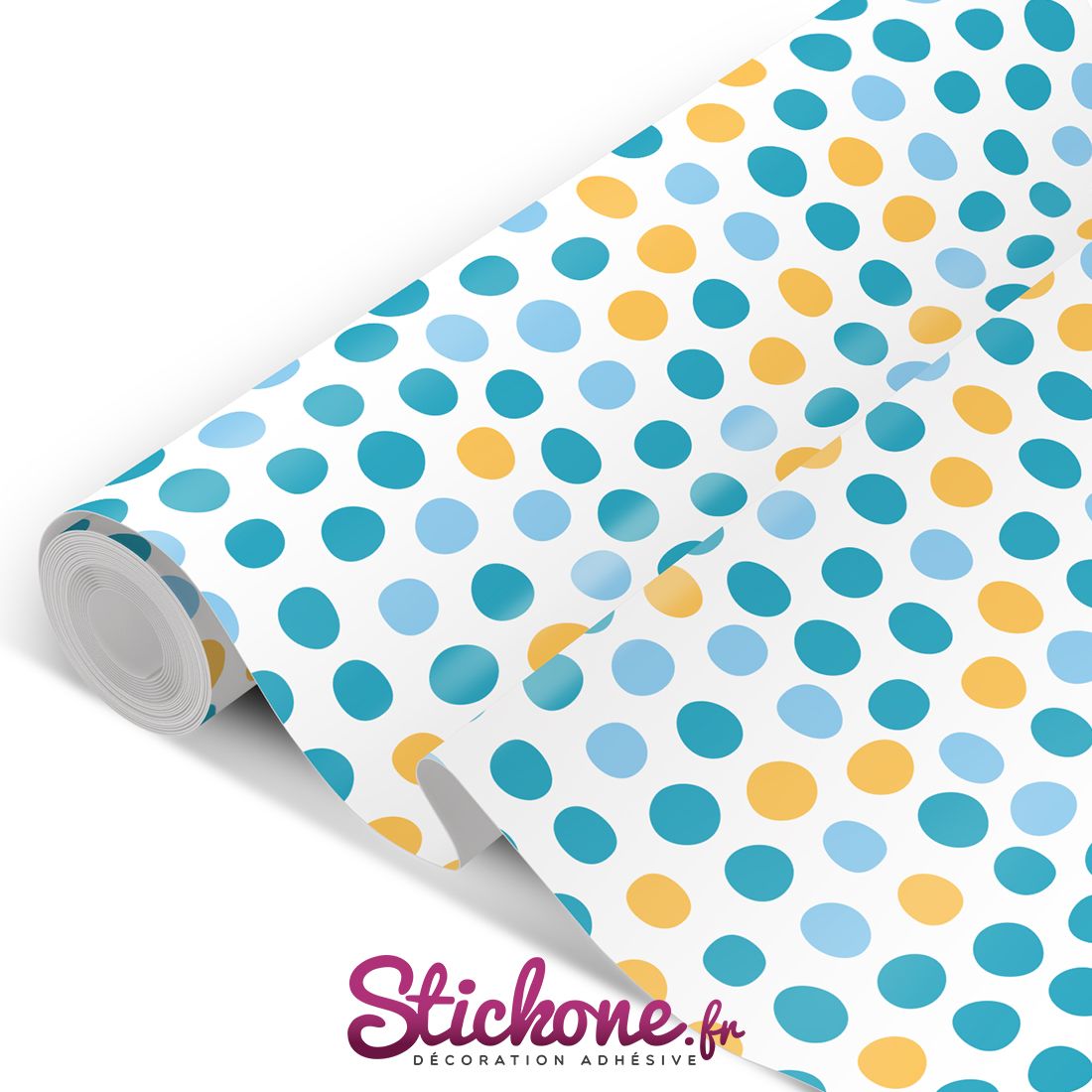 Rouleau de vinyle adhésif créatif motifs à pois pour personnalisation de meuble, plateau de bureau, placards, escaliers ou pour vos projets de rénovation, DIY, etc... Film adhésif vendu au mètre linéaire de 1 à 3 mètre. De plus, ce film vinyle peut être découpé au plotter de découpe, silhouette cameo, cricut ou scan n cut.